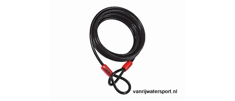 Lusbare speciaal geweven RVS staalkabel voorzien van een polyethyleen bekleding, met ogen voor meervoudige toepassingen. Draad diameter Lengte 10 mm 5 meter Informeer bij uw verzekeringsmaatschappij welk type slot en/of kabel wordt geaccepteerd.